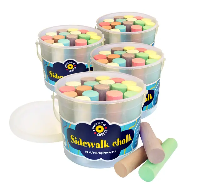 4 bokser med kritt a 20 stk. Perfekt til tegning på asfalt, plater, betong m.m.