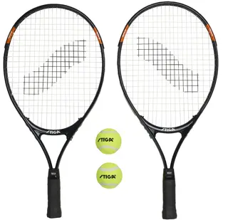 Settet inneholder ett flatt 50 cm balltre og ett rundt 60 cm balltre med PU grep, en tennisball og bære nett.