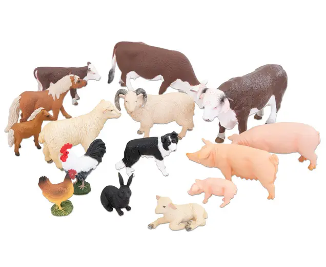 Sett med bondegårdsdyr i perfekt størrelse for små hender å holde. 5 - 14 cm