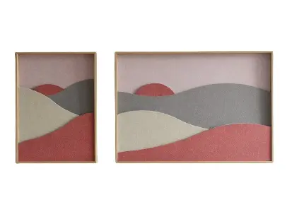 Mål: To størrelser: 527 x 724 mm og 1024 x 724 mm, tekstil kuttet i ulike former og tykkelser 20, 40 og 50 mm