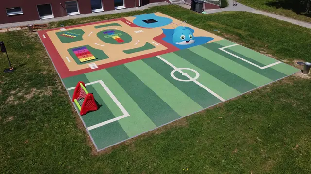Materiale: SPR + EDPM gummigranulat og PU-bindemiddel med hærverkbestandig fiberglassoverflate, finne i rustfritt stål.