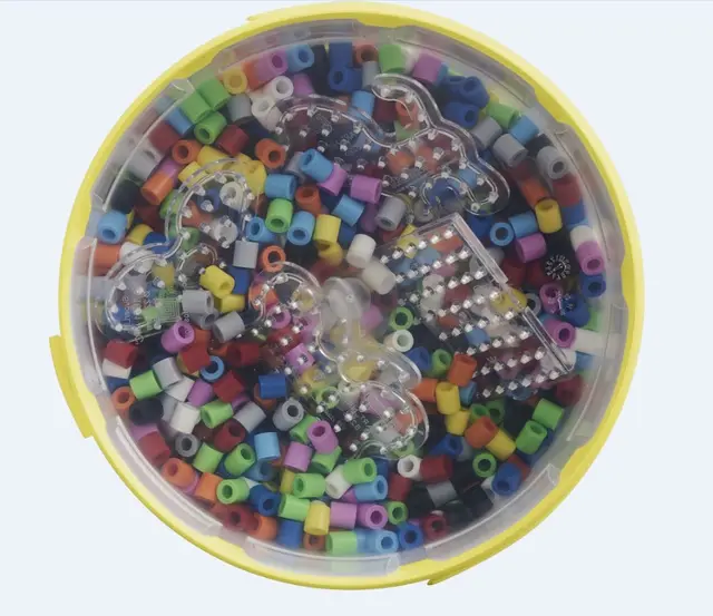 Boks med 3000 maxi rørperler, 4 perlebrett, motivark og stykepapir.