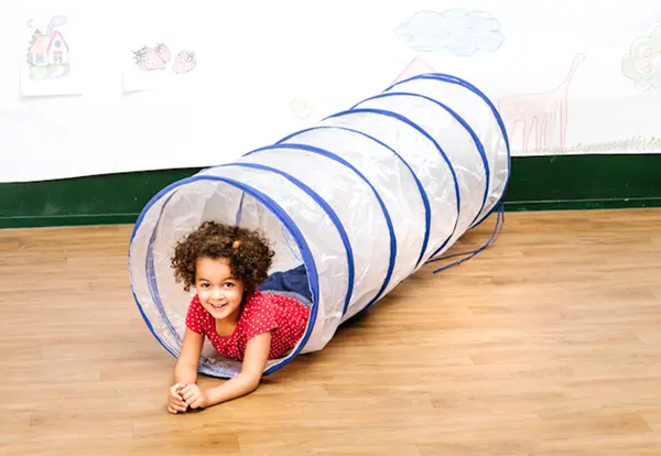 Krypetunnel med fjærstrammer i forsterket plast Gjennomsiktig L: 180 cm. Diam.: 60 cm.