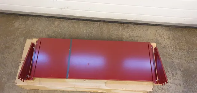 Skohylle med braketter av 1,5 mm metallplate og runde 19 mm rør. Konsollen har faste vinkler for dryppebrett. Leveres montert inkl. dryppebrett. Pulverlakkert i rød farge. Dette er en gjenbrukvare/feilbestilling. Ikke noen feil eller synlige skader.