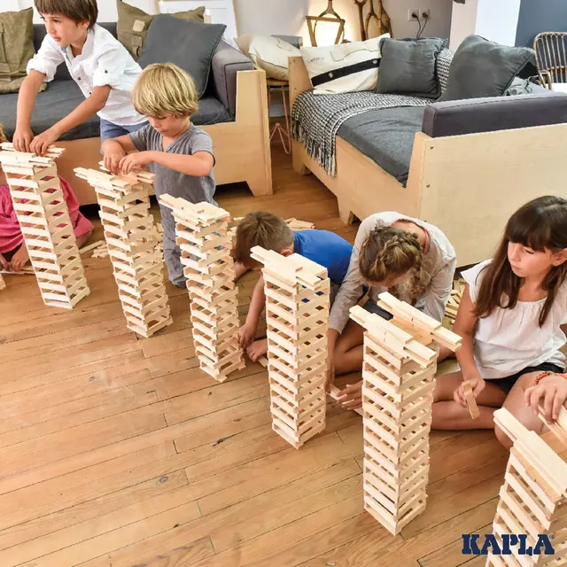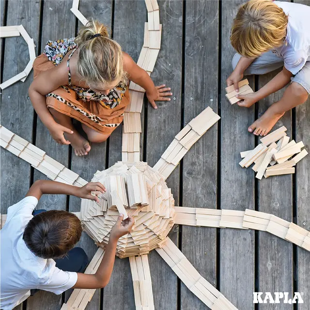 KAPLA er en pedagogisk leke og byggesystem som består av identiske treblokker som brukes til å bygge ulike strukturer og konstruksjoner. Bitene er laget av tre og er kjent for sin enkle, men robuste design, og oppmuntrer til kreativ tenkning, problemløsning og samarbeid. Målene har et tredimensjonalt gyllent snitt. 3 staver som ligger flatt over hverandre tilsvarer bredden på en stav, og 5 staver som ligger flatt ved siden av hverandre tilsvarer lengden på en stav. Dette gir uendelig mange kombinasjonsmuligheter. Kapla har vunnet priser i Europa og har blitt anerkjent for sin store leke- og læringsverdi.
