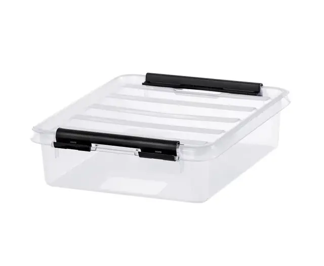 Transparent oppbevaringsboks for diverse formingsmateriell. Perfekt for organisering av for eksempel rørperler, og de gjennomsiktige bokene gir full oversikt over innhold. Stables på hverandre med lokk og i hverandre uten lokk. Klips på sidene holder lokket godt på plass. Rommer ca 1 liter.