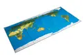 Puslespill med motiv av verdenskart, båter og mennesker.