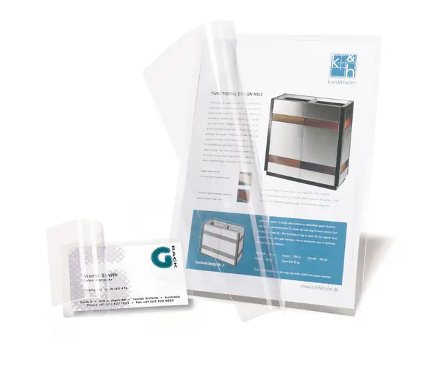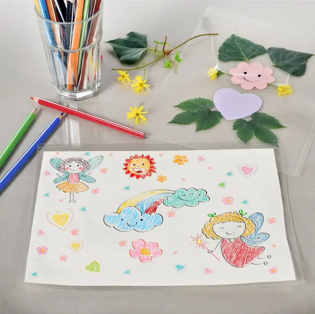 Lamingeringslommer som ikke krever maskin. Enkelt og sikkert å bruke også for barn. Avrundede hjørner. Kan også laminere tykke materialer som bomull, fjær, klistremerker, ull og annet som ikke kan lamineres i maskin. Laget av miljøvennlig PP og PET. Finnes til A4 og A5 størrelse og som etiketter (se art 4457)