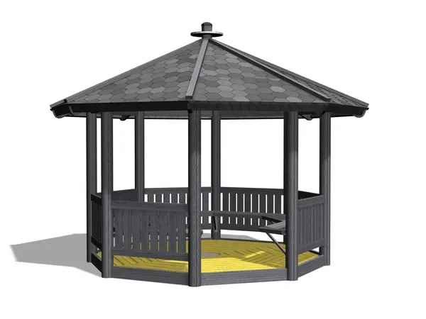 Dette er en åtte-kantet paviljong med et tak som beskytter mot både sol og regn. Paviljongen har også benker langs alle veggene innvendig.