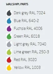 Farge: Leveres i 8 forskjellige farger på HPL-platene