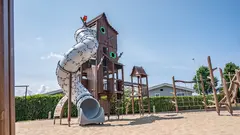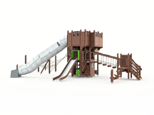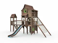 Funksjoner: Aktivitetsapparat med tårn, balanseelementer, klatrenett, trinnbro, sklier