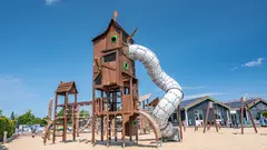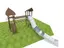 Funksjoner: Nettbro, to sklier, tårn, klatrenett, klatrestige, klatrerampe