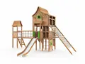 Funksjoner: Aktivitetsapparat med et lite og et stort leketårn, sklie, klatrenett og balanseelementer