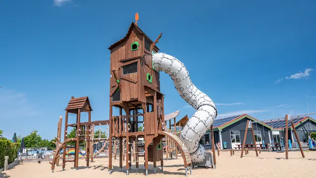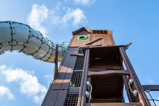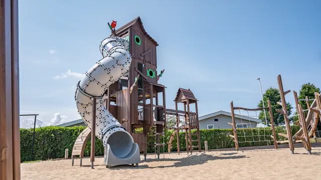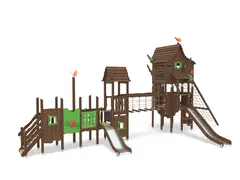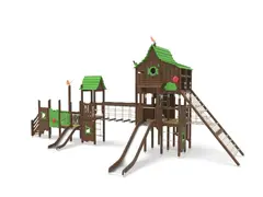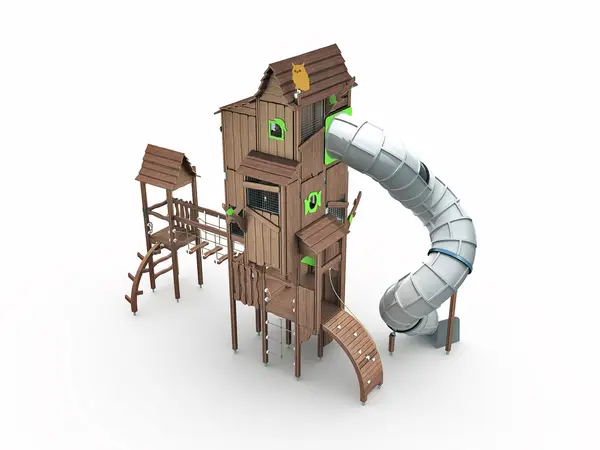 Funksjoner: Balansebro, klatreelementer, aktivitetstårn, sklie, taustige