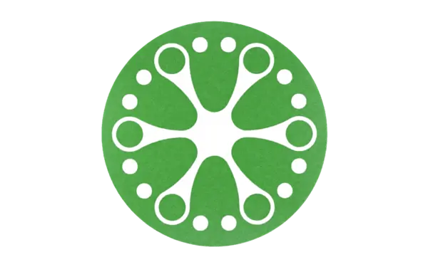 Kunstgressgulv for Memo i hvitt og grønt med en diameter på 8 meter og en fiberlengde på 15 mm. Sandinnfyll anbefales. Gulvet er laget for innendørs og utendørs bruk.