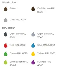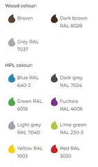 Farge: Kan leveres i fargene gul, rød og mørk grå