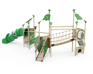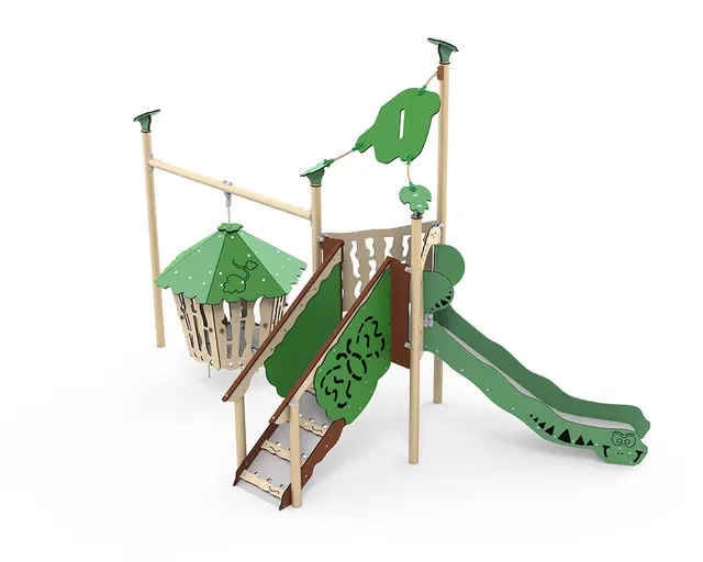 Mindre lekeapparat med stige, plattform, sklie og en bevegelig jungelhytte, lukket for små hemmeligheter, men også åpen for voksent tilsyn. Her kan mindre barn utfordre bl.a. motorikk, balanse og sosiale ferdigheter.