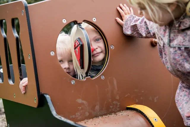 Ferdighetstrening: Grovmotorikk, sosialt samspillMateriale: HDPE-plater, polykarbonatMål: L189 x B80 x H91 cmFallhøyde: 20 cmSikkerhetsareal: L489 x B380 cm, 19 m²Alder: Fra 3 årSertifisering: EN 1176