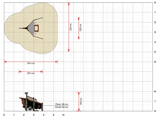 Sikkerhetsareal: L541 x B520 cm, 28,2 m²