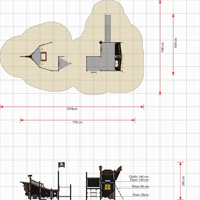 Sikkerhetsareal: 1078 x 708 cm, 76,32 m²