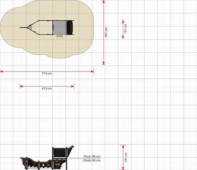 Sikkerhetsareal: L713 x B441 cm, 31 m²