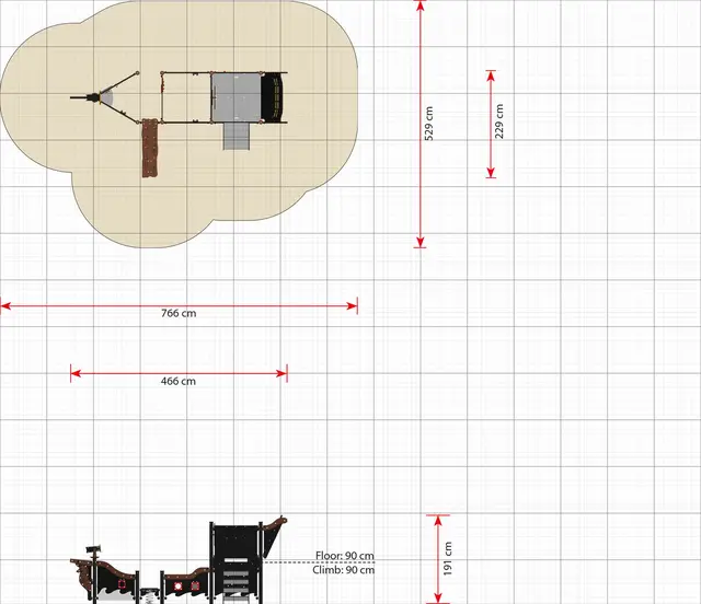 Sikkerhetsareal: L766 x B529 cm, 41 m²