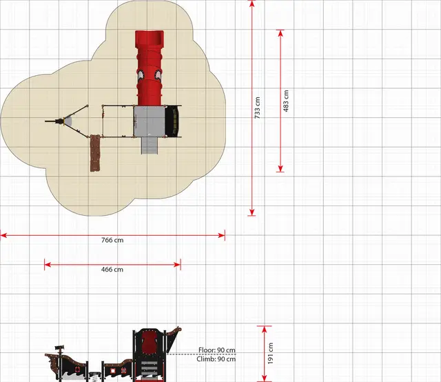 Sikkerhetsareal: L766 x B733 cm, 56 m²