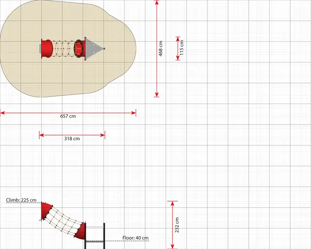 Sikkerhetsareal: L657 x H468, 30,8 m²