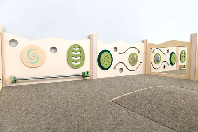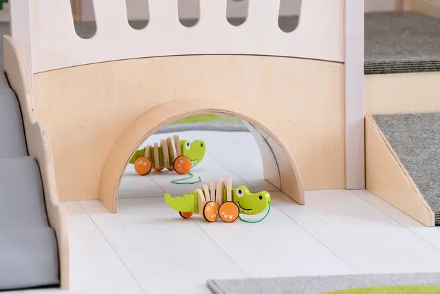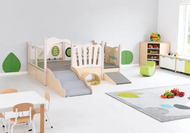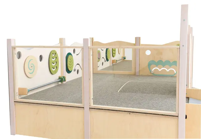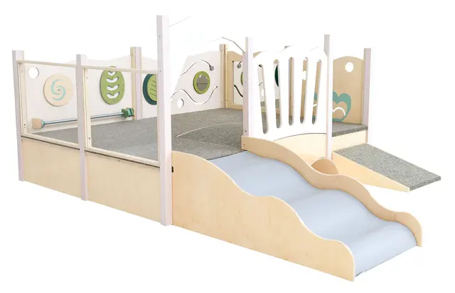 Flora lekehjørne mini, en plattform for de minste. Lekehjørnet blir raskt en barnemagnet da den inviter nyskjerrigheten til nye oppdagelser. Barna vil underveis finne ulike sansevegger, motorikkvegger, sklie og nivåforskjeller. Plattformen har godt med utkikksteder der barna kan observere og oppdage rommet fra høyden. Dette gir også godt innsyn fra utsiden. Plattformen er dekket av gulvteppe for sklisikkerhet.