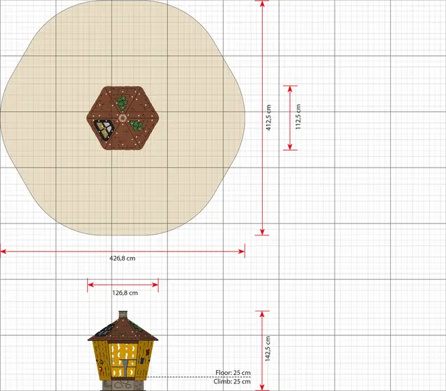 Sikkerhetsareal: L427 x B413 cm, 18 m²