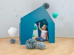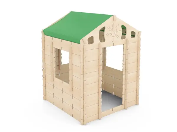 Hans og Grethe huset er et byggesett med 81 lafteklosser i 15 mm tykk kryssfiner av bjerk. Her kan barna samarbeide og bygge huset etter egen fantasi. Leveres med stoff som er tilpasset tak, i solid grønn oxford stoff. Kun til innendørsbruk.