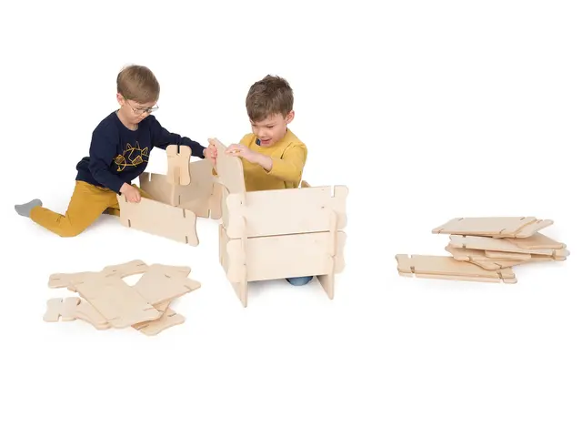 Byggesett med lafteklosser i 15 mm tykk kryssfiner av bjerk. 81 deler.