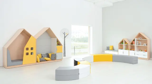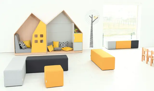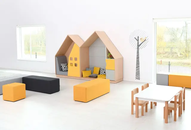 Materiale: Møbelspon 18 mm, laminat lys lønn farge, lys grå linoleum