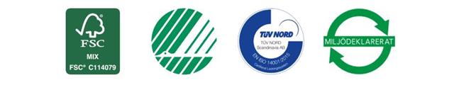 Papiret vårt er laget av cellulosemasse med fibre av høyeste kvalitet og/eller med resirkulert fiber. Vi er FSC®-sertifisert og oppfyller skandinaviske krav til produksjon av giftfrie produkter til skoler. Det meste av vårt sortiment er også Svanemerket.