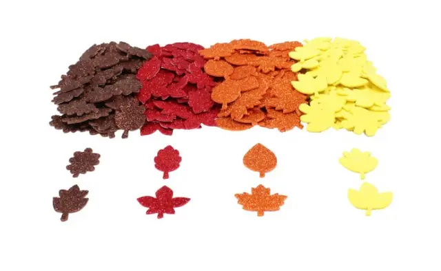 Flotte høstblader i mosegummi. Kommer som klistemerke, så behøver ikke lim for å festes.