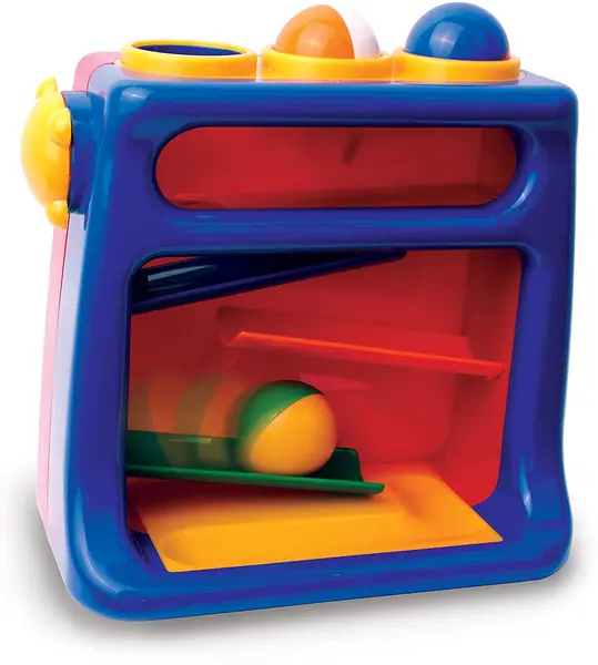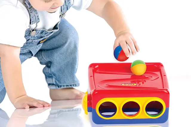 Kulebane for de yngste barna, som kan brukes på begge sider. I tillegg er det en sorteringsfunksjon på toppen hvor barnet matcher farger. La barnet utforske de forskjellige funksjonene mens det øver på øye- og håndkoordinasjon og problemløsning.