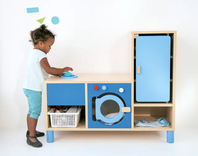 Her kan alle dukkeklær vaskes og brettes sammen. Alle skapdører er klembeskyttet!