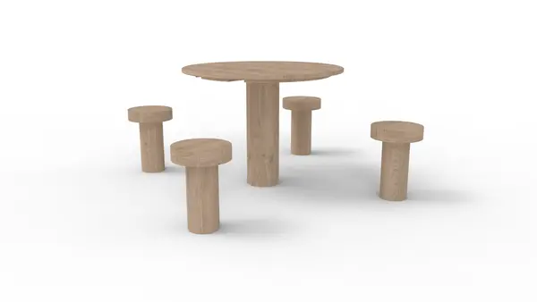 Mål: Bord Ø80 cm, stol Ø24 cm