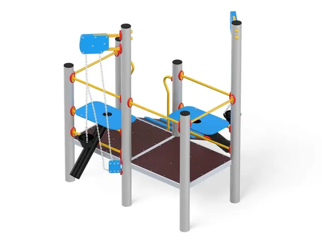 Stolper i rustfritt stål som er pulverlakkert. Gulv og bord laget av HDPE. Festeanordninger i rustfritt stål