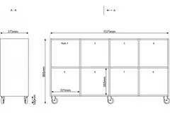 Kubus reol åpen 8 rom stående Med hjulKubus reol åpen 8 rom stående Med hjul