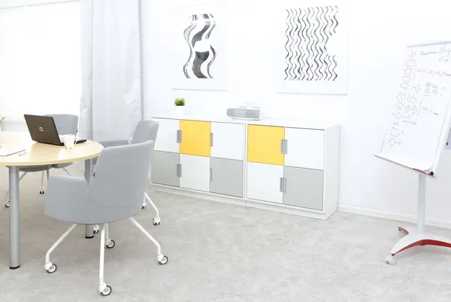Liten dør for montering på yttervegg av en rekke Quadro skap, reoler og lesehus. Døren har softclose funksjon og er utstyrt med hengsler som tillater 90 grader åpning. Velg blandt flere flotte farger.