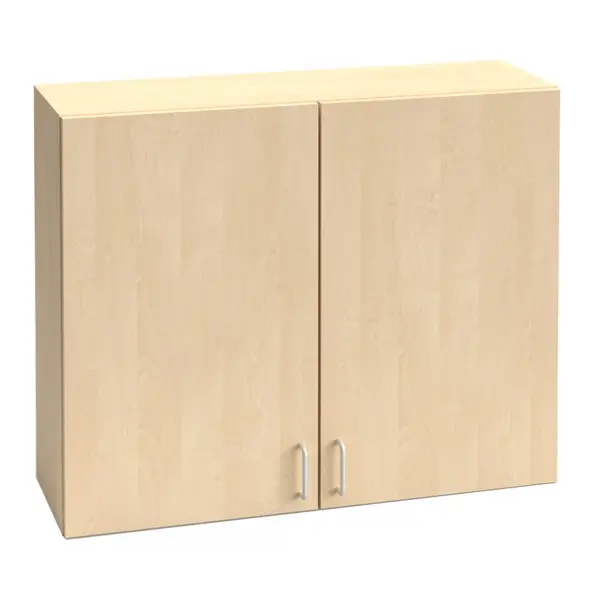 Vegghengt skap med 2 hyller. Utført i sponlaminat. Doble dører med håndtak i aluminium. Skapet leveres i 2 ulike farger.