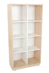 Fleksibel reol for oppbevaring med tre hylleplan og en skillevegg. Reolen er designet spesielt med tanke på utdanningsmiljø, og kan enkelt tilpasses de ulike behovene man har for oppbevaring. Tilvalg inkluderer ekstra hyller, små eller store dører og smale skuffer.