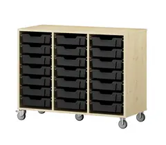 Praktisk skuffereol for oppbevaring av materiell og utstyr, et supert alternativ for barnehager og skoler. Kombineres med plastskuffer i flotte farger - smart for å skape system og oppnå et enhetlig uttrykk tilpasset rommets øvrige interiør.