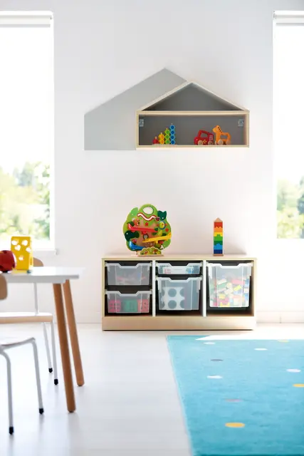 Materiale: Møbelspon 18 mm, laminat lys lønn og hvit farge