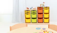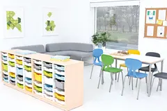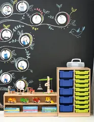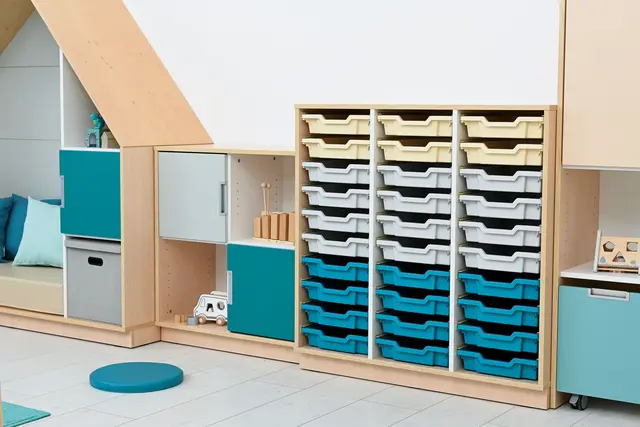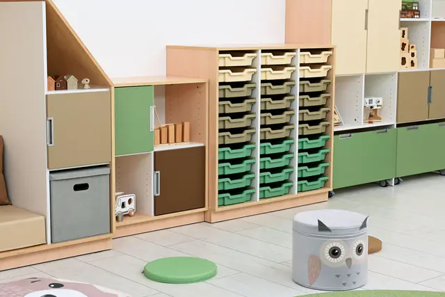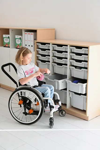 Materiale: Møbelspon 18 mm, laminat lys lønn og hvit