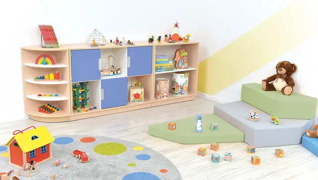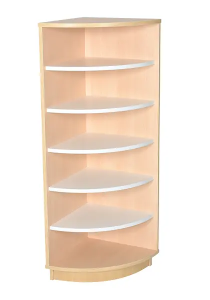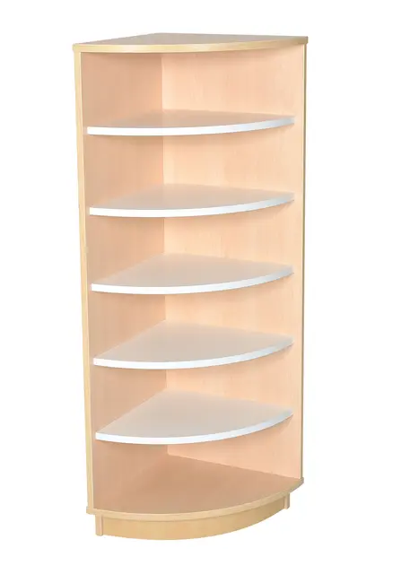 Praktisk reol med åpne, buede hyller. Kan brukes frittstående som hjørnereol eller plasseres inntil andre reoler for å skape en avrundet avslutning. Bidrar til god plassutnyttelse og en helhetlig innredning.