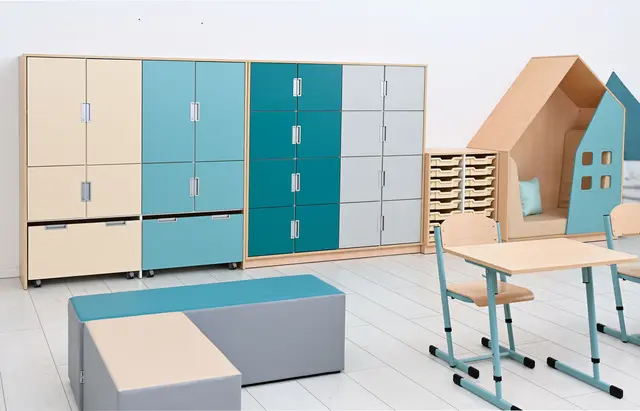 Materiale: Møbelspon 18 mm, laminat lys lønn og hvit farge