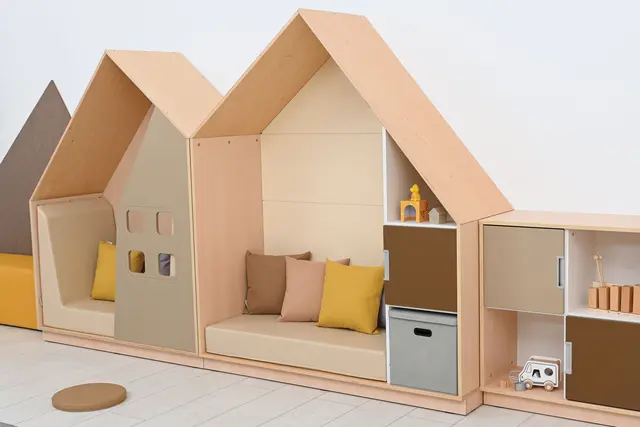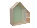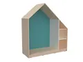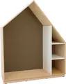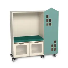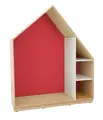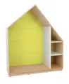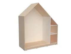 Kombinasjonsreol utformet som et lite hus. Her får barna et avskjermet og dedikert rom for rolige lese- og lekestunder. Med innebygde hyller som gir god plass til oppbevaring av bøker eller leker. Reolen kan kombineres med små dører.