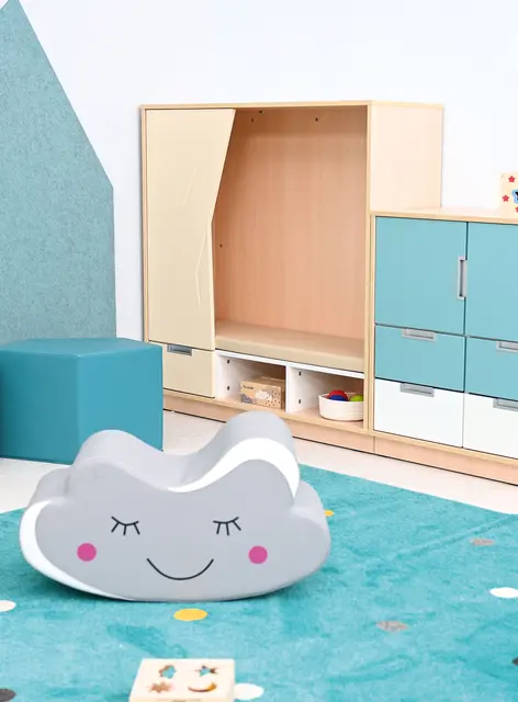 Materiale: Møbelspon 18 mm, laminat lys lønn farge, MDF